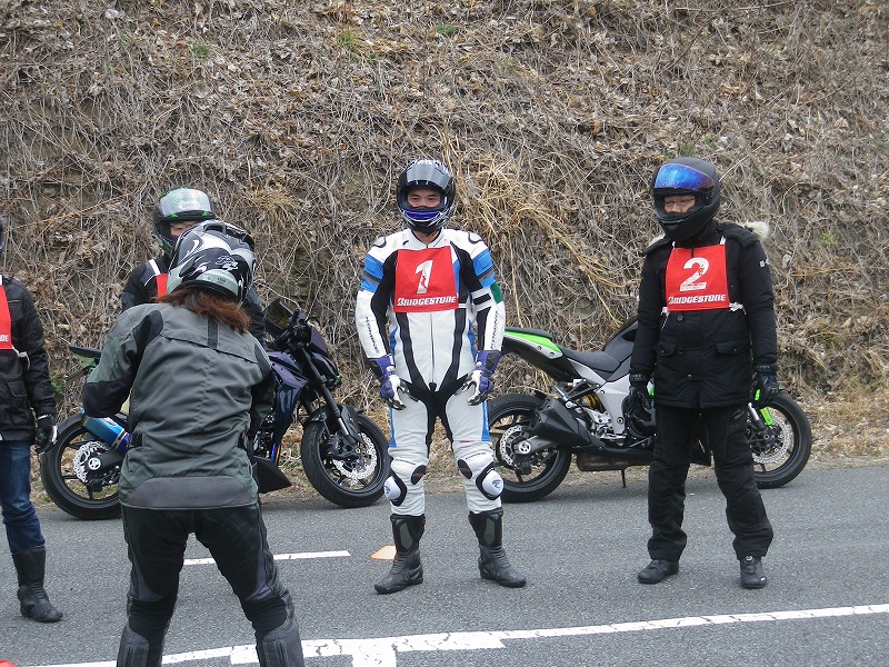 ツナギを着てない方もいるのでフリー走行ではなく先導者に付いてゆっくり走ります。