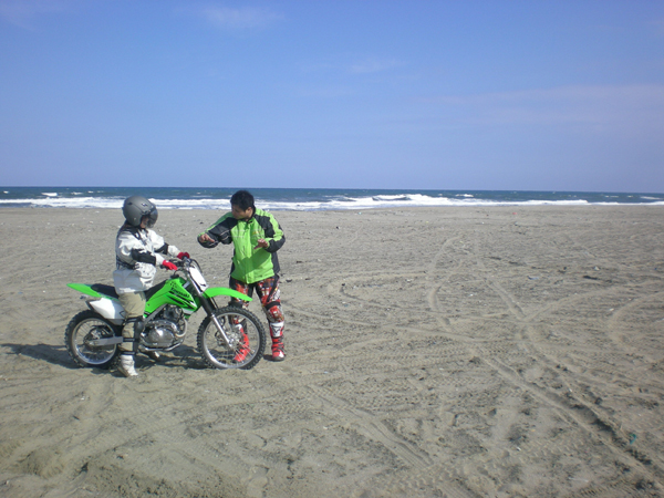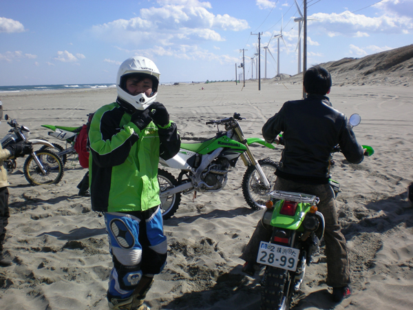 (天気予報では)砂浜でオフ車で遊んじゃおー ロードバイクの人もL2号をお貸ししますので楽しくオフ体験できますよ~
