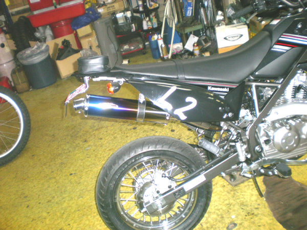 L2の試乗車Dトラ125にマフラーが付きました!