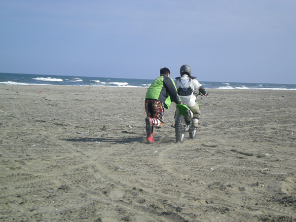 砂浜でオフ車で遊んじゃおー ロードバイクの人もL2号をお貸ししますので楽しくオフ体験できますよ~