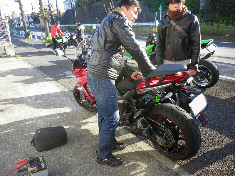 と思ったらなんとNinja1000のバッテリーがあがってしまってエンジンがかからず・・・