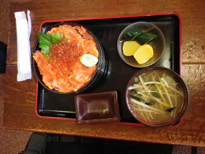 鮭といくらの親子丼と鯵のなめろう