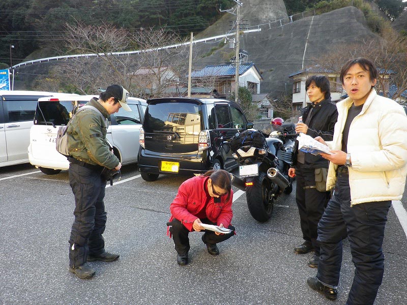 途中パーキングでトイレ休憩とバイク組の暖をとり雑談