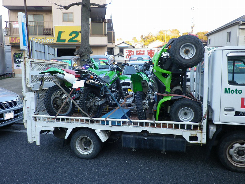 現地まで荷物を積んだトラック&車とバイク自走組み